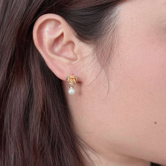 ROSIE - Boucles d’oreilles mariage motif rose et petite perle blanche Parure Bijoux Mariage chic Cadeau Noël pour elle