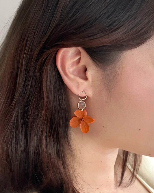 INNA TERRACOTTA - Boucles d'oreilles mariage cristal et fleur stabilisées orange terracotta Bijoux mariage cadeau demoiselle d'honneur