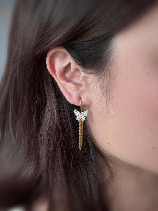 NABIE GRACE - Boucles d'oreille à clips mariage/ Clips d'oreilles pour oreilles non percées papillon et chaîne Bijoux mariage Cadeau Noël