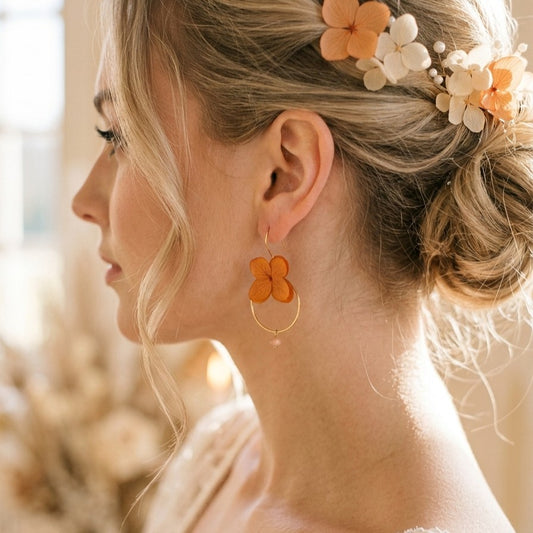 NAHIA PEARL - Boucles d'oreilles pour mariée en fleur d'hortensia orange terracotta Bijoux mariée et demoiselle d'honneur cadeau témoin
