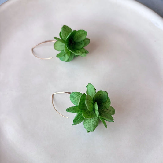ZOE VERT - Boucles d'oreilles mariage crochet et fleur d'hortensias stabilisé vert Parure Bijoux Mariage