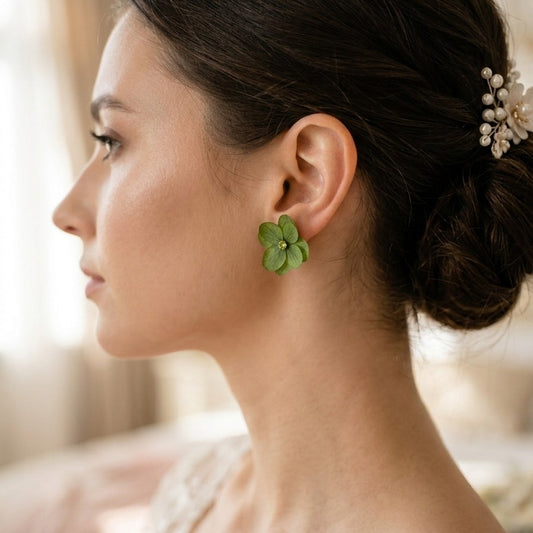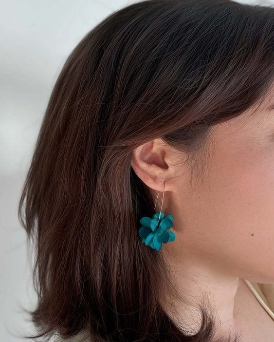 SVEA - Boucles d'oreilles mariage crochet en fleur d'hortensias stabilisée vert paon Bijoux Mariage Cadeau Noël