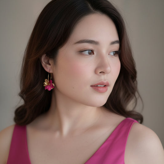 REIKA GOLD - Boucles d'oreille mariage fleur stabilisée fuchsia et doré Parure Bijoux Mariage Bijoux demoiselle d'honneur Cadeau St-Valentin