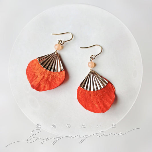 SIENNA GOLD - Boucles d'oreilles mariage fleur stabilisée orange terracotta et dorée Parure Bijoux mariage Bijoux demoiselle d'honneur