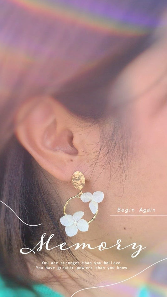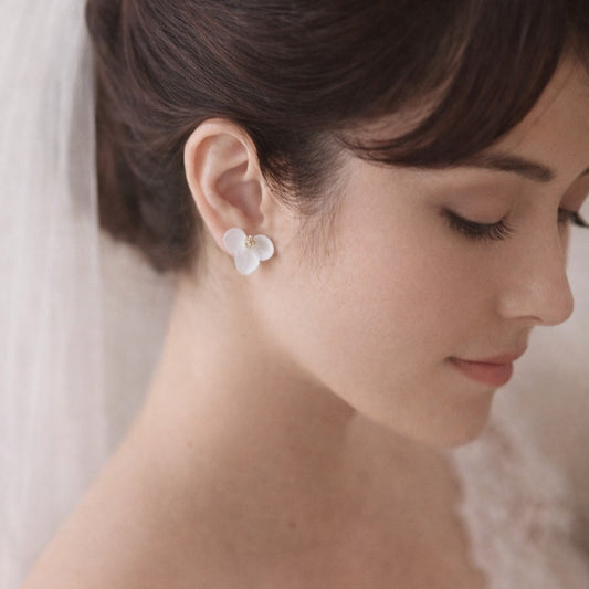 CAMILLE - Boucles d'oreilles mariage fleur d'hortensia stabilisé blanc Bijoux Mariage