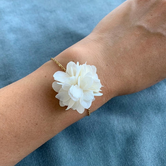 LILY - Bracelet de mariage en fleur d'hortensia stabilisé blanc crème Bijoux pour mariée