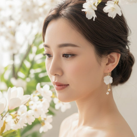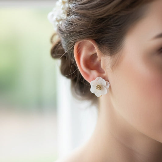 HINATA CLIPS - Boucles d'oreille à clips pour mariées aux oreilles non percées, en fleur stabilisée blanche Parure de bijoux mariage