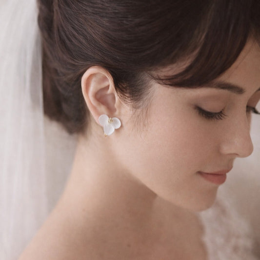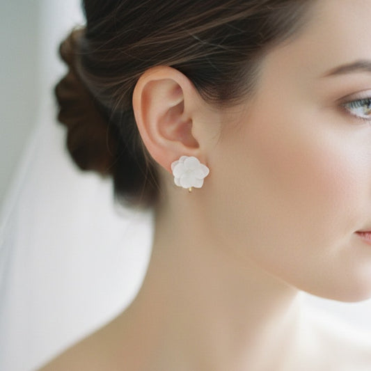 JOYCE - Boucles d'oreilles mariage à clips pour oreilles non percées fleur d'hortensia blanc Bijoux Mariage