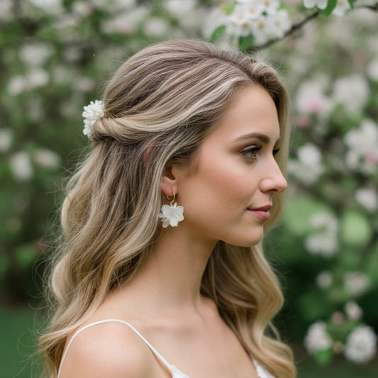 Optez pour nos clips d'oreilles mariage, parfaits pour les oreilles non percées. Alliant finesse et originalité, ces bijoux floraux apporteront une touche de douceur et de sophistication à votre look.