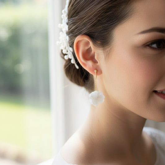 CAMILLE CLIPS - Boucles d'oreilles mariage à clips pour oreilles non percées en hortensia stabilisé blanc Bijoux Mariage Bijoux Mariée