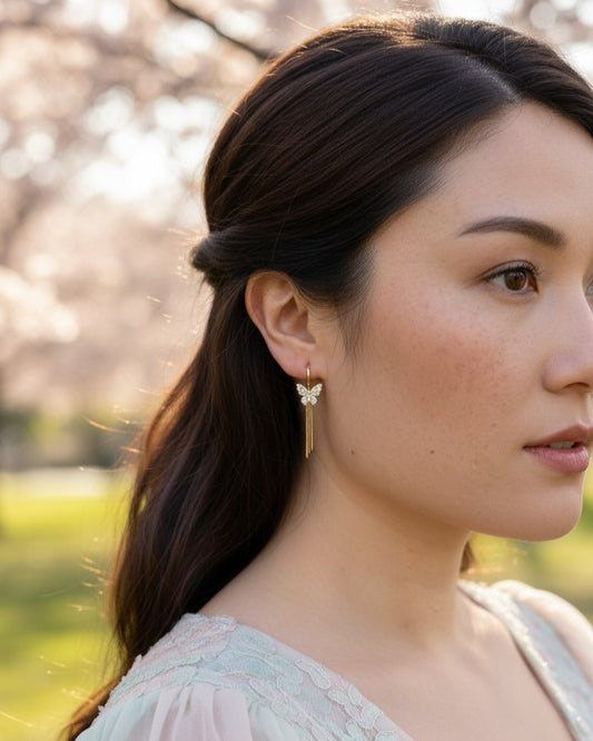 NABIE GRACE CLIPS - Boucles d'oreille à clips mariage/ Clips d'oreilles pour oreilles non percées papillon et chaîne Bijoux mariage Cadeau Noël