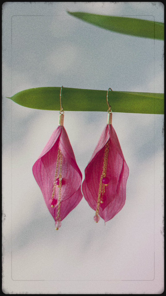 CALLA - Boucles d’oreilles mariage fleur d'arum feuille stabilisée rose Bijoux mariage pour mariée et invitée