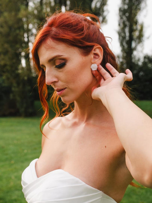 IVY - Boucles d’oreilles mariage clou texturé et fleur d'hortensia stabilisé blanc Bijoux Mariage