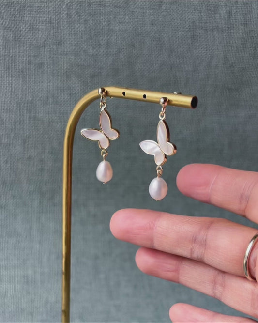 NABIE PEARL - Boucles d'oreilles mariage papillon nacré et perle naturelle premium Parure bijoux mariage perle d'eau douce Cadeau Noël