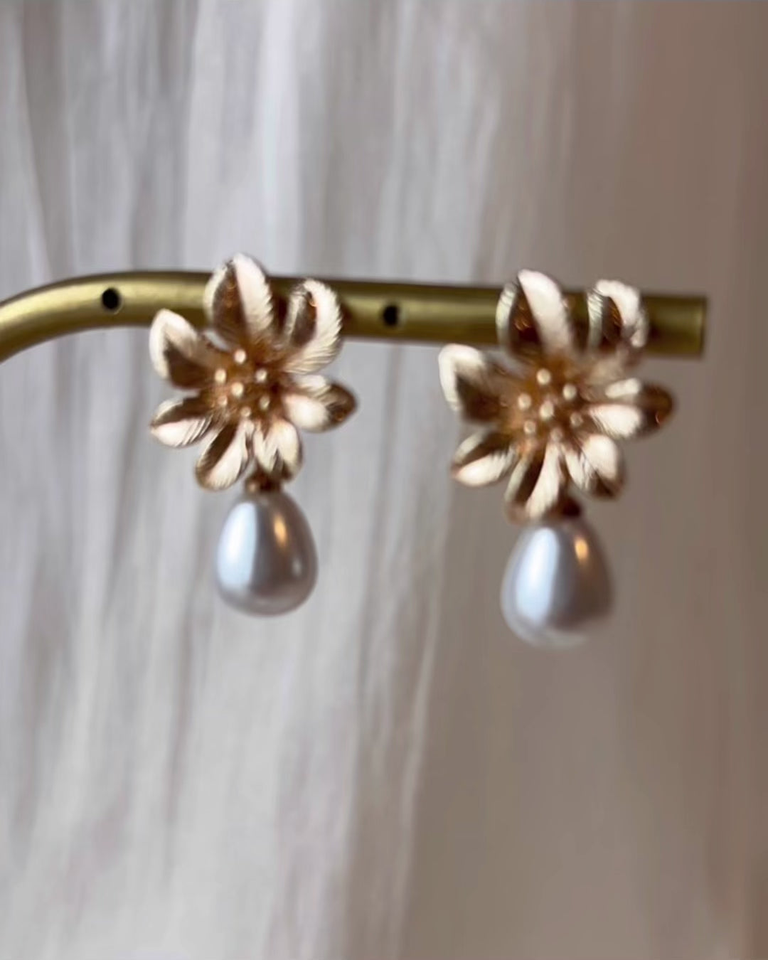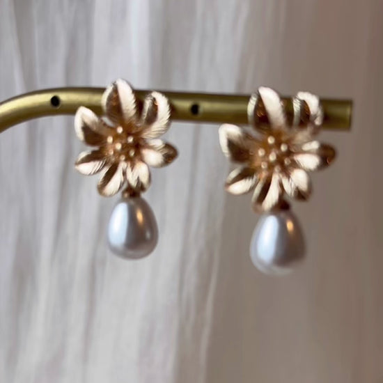 Ces boucles d’oreilles allient la délicatesse d’une fleur dorée à l’éclat pur d’une perle blanche, pour un rendu à la fois raffiné et intemporel.