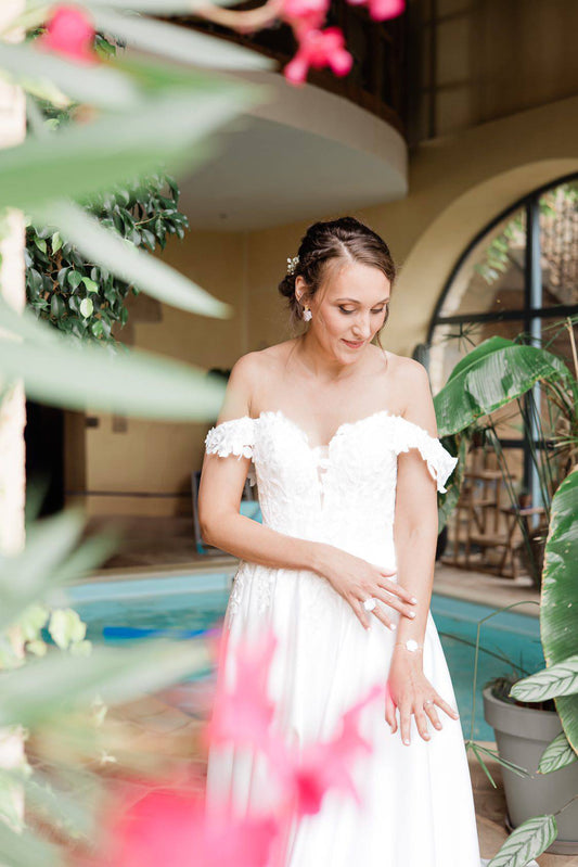 Inspirées par cette grâce florale, mes créations de bijoux de mariage, réalisées à la main avec des fleurs stabilisées, ajoutent une touche de fraîcheur et de poésie à votre tenue de mariée, pour un souvenir aussi intemporel que votre amour.